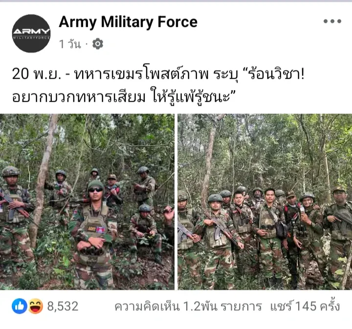 ลั่นกลางโซเชียล ทหารเขมร ท้าชน ประกาศ ร้อนวิชา อยากบวกทหารเสียม ให้รู้แพ้รู้ชนะ
