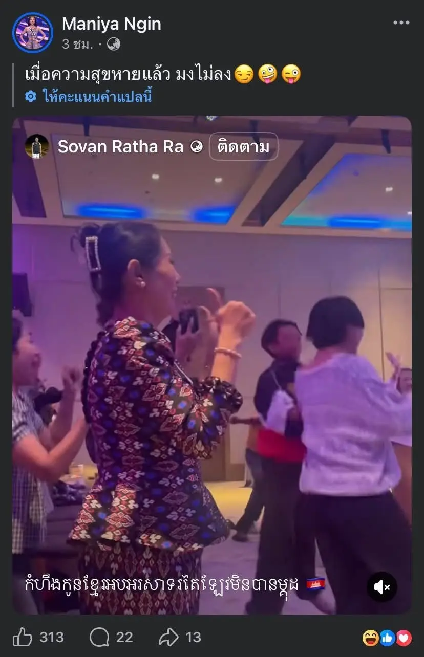 เมื่อผู้ใช้บัญชี Facebook ที่มีชื่อว่า Sovan Ratha Ra ที่เป็นแอ็คเค้าท์ชาวเขมร ได้โพสต์คลิปบรรยากาศแฟนนางงามชาวเขมรขณะชมการประกวด MU2025 ที่ประเทศตัวเอง จากนั้นเมื่อมีการประกาศว่าประเทศไทยได้เพียงรองอันดับ 1 เสียงเฮก็ดังก้องขึ้นทั่วห้องทั้งแฟนๆและทีมงานรวมไปถึงแม่ของ “เนียรี โสเจียตา ไท” มิสยูนิเวิร์สเขมร ที่ดีใจจนยกนิ้วโป้งให้ เท่านั้นยังไม่พอ บางคนถึงขั้น ชูนิ้วกลาง ใส่ภาพวีนาที่ฉายอยู่บนจอ โดยเหตุการณ์นี้สร้างความไม่พอใจให้กับเหล่าแฟนคลับของนาง นางงามชาวไทยเป็นอย่างมาก