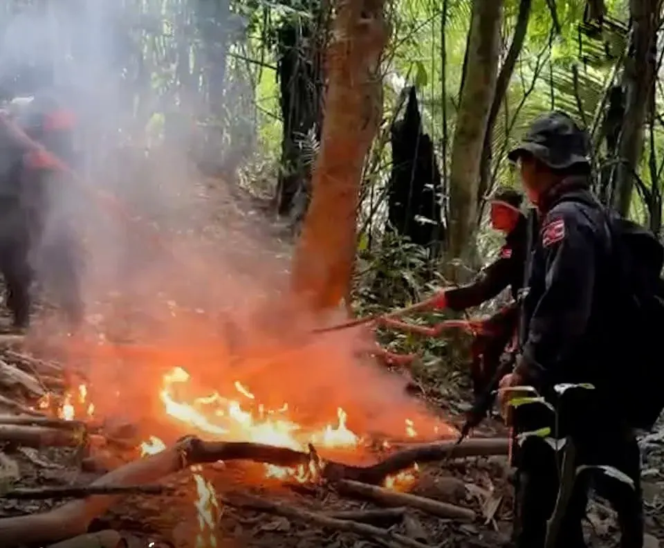 ทหารพรานนาวิกโยธิน ลุยป่า เผาพิงพักเขมร ริมชายแดน ลั่น พวกนี้ลักลอบตัดไม้-ล่าสัตว์สงวน 🌳