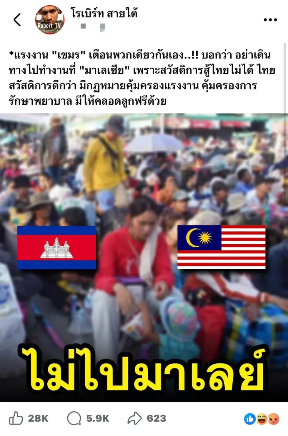 “โรเบิร์ท สายใต้” ผู้ที่สร้าง Content ได้รับความนิยมลำดับต้นๆของแรงงานเขมรได้ออกมาแชร์ข้อมูลเตือนเพื่อนแรงงานชาวเขมรโดยระบุว่า