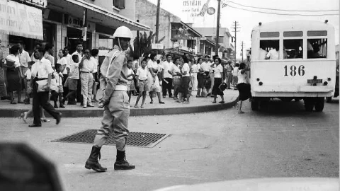 “ป้ายรถเมล์ในพระนคร พ.ศ. 2504 – วันวานที่รถเมล์เปิดหน้าต่างรับลม และผู้คนยืนรอแน่นป้ายท่ามกลางเสน่ห์เมืองเก่า”
