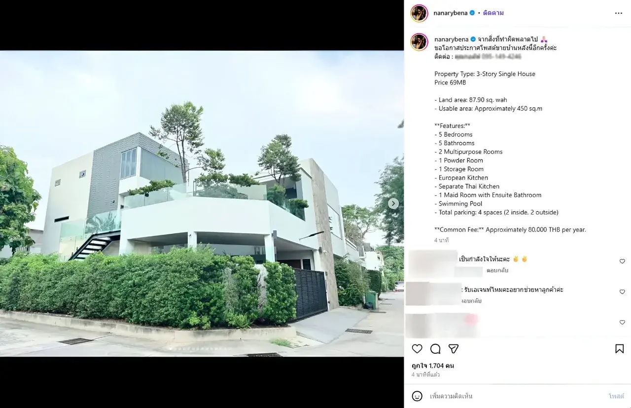 "นานา " ประกาศขายบ้านหรู 69 ล้านบาท กลางไอจี หลายฝ่ายมองว่ากำลังเตรียมเคลียร์ปัญหา หนี้สิน สินที่ติดค้างเพื่อน