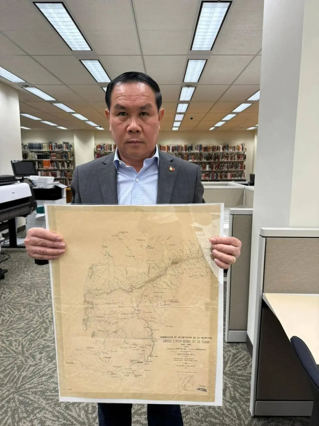 นักวิชาการเขมรกางแผนที่มาตราส่วน 1:200,000 ที่เก็บรักษาอยู่ที่หอสมุดแห่งชาติของสหรัฐอเมริกา โดยระบุว่านี่คือแผนที่โบราณของสยาม–ฝรั่งเศส ที่ถูกสำรวจในปี ค.ศ. 1904, 1907 และ 1908 จำนวน 12 แผ่น ซึ่งยังไม่เคยเปิดเผยที่ใดมาก่อน และถือเป็นหลักฐานสำคัญที่ช่วยบ่งชี้ว่า “ดินแดนส่วนใหญ่เป็นของกัมพูชา ไม่ใช่ของไทย”