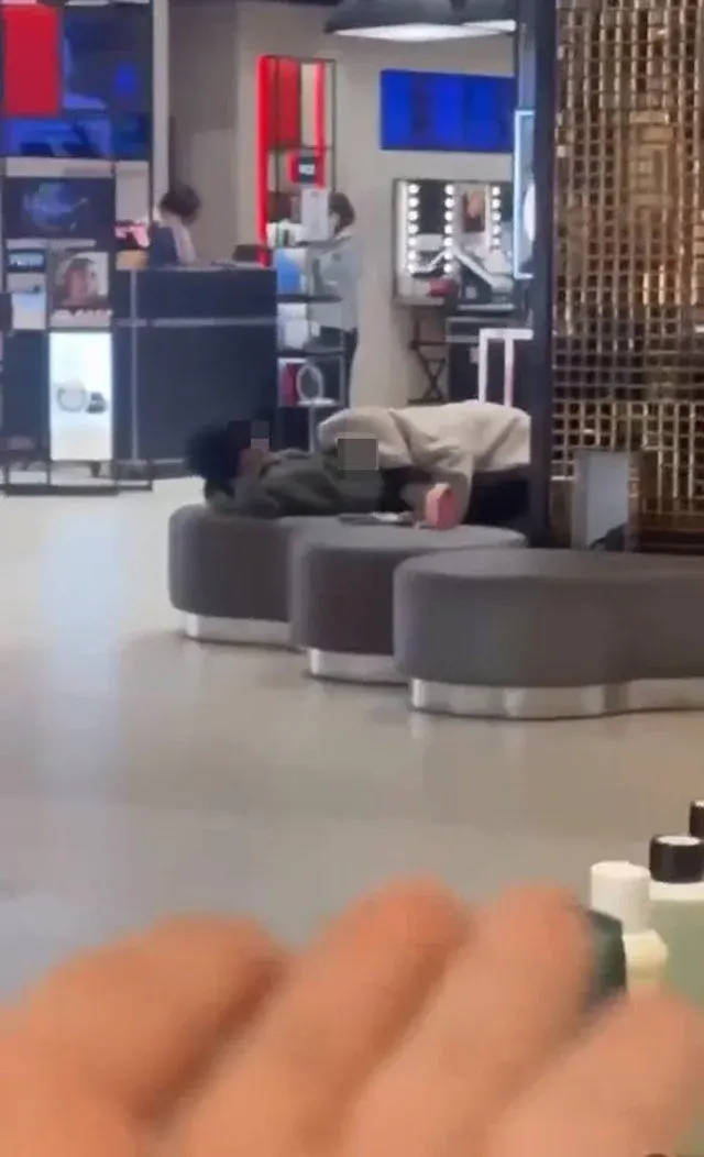 สาวเนียนเป่าปี่หนุ่มตรงที่นั่งกลางห้างสรรพสินค้า