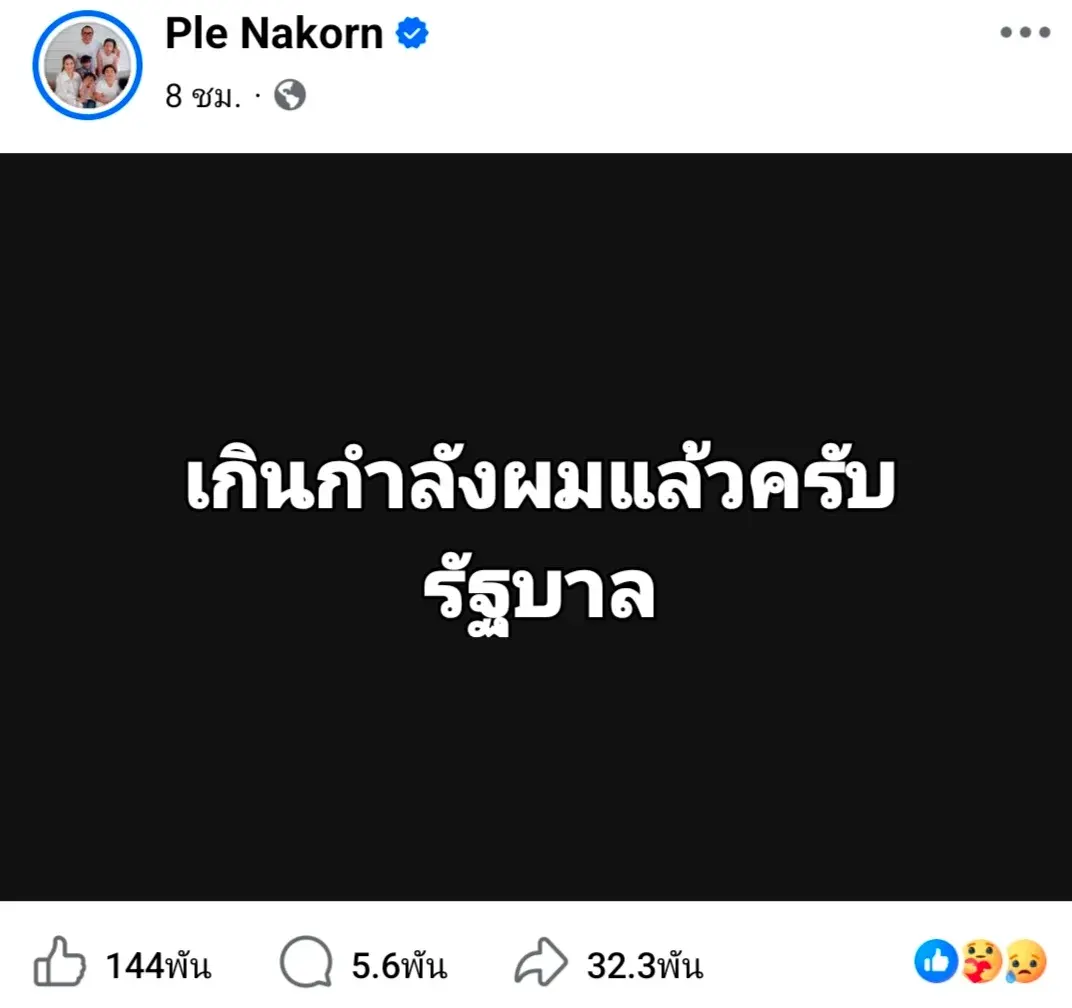 นั่นก็คือตัวของเปิ้ล นคร ซึ่งล่าสุดนี้ได้มีการออกมาโพสต์ข้อความผ่าน Facebook ที่ระบุว่าเกินกำลังผมแล้วครับรัฐบาล นี่แสดงให้เห็นถึงภาวะน้ำท่วมสูงในครั้งนี้เกินกำลังความสามารถของเจ้าตัวซึ่งต้องเป็นหน้าที่ของรัฐบาลที่ต้องจัดการปัญหานี้ลงมาช่วยเหลือประชาชนอย่างจริงจัง เพราะว่าเพียงลำพังประชาชนตัวเลขตัวน้อยที่ช่วยเหลือกันคงไม่เพียงพอ ในการช่วยเหลือ ทุกคนที่กำลังประสบปัญหาอยู่ในขณะนี้