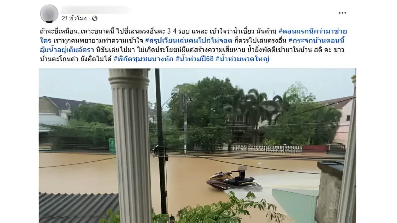 ดราม่ากลางน้ำท่วม อาสากู้ภัยเจ็ตสกีโดนชาวบ้านโวย "ขับเร็วเกินไป" สุดท้ายประกาศ "ขอหยุดช่วยทั้งหมด"