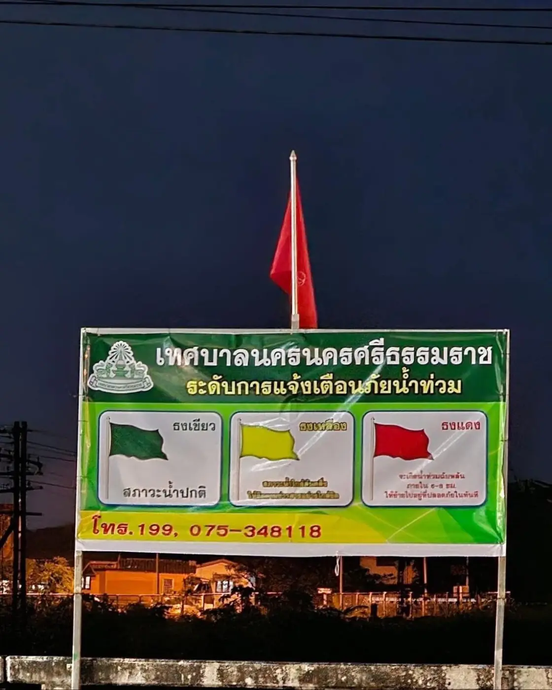 เทศบาลนครศรีธรรมราช ‘ปักธงแดง’ เตือนภัยน้ำท่วม หลังระดับน้ำในคลองเพิ่มต่อเนื่อง พื้นที่ลุ่มต่ำเตรียมพร้อมรับมือ🙏🏻😭