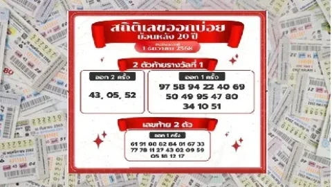 เผยสถิติเลขออกบ่อย ย้อนหลัง 20 ปี..งวดวันที่ 1 ธันวาคม 68