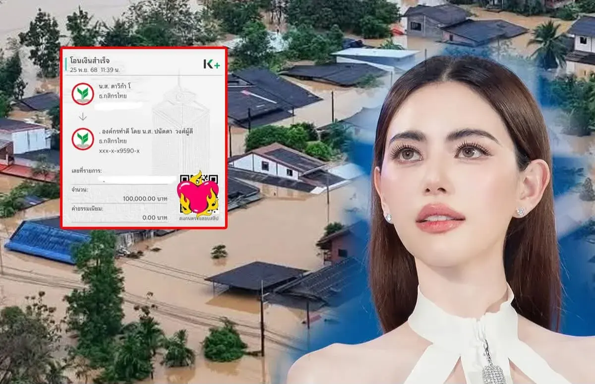 “ใหม่ ดาวิกา โอนเงิน 100,000 บาทช่วยน้ำท่วม สะท้อนพลังคำว่า ‘คนไทยไม่ทิ้งกัน’ ที่ยังงดงามเสมอ”