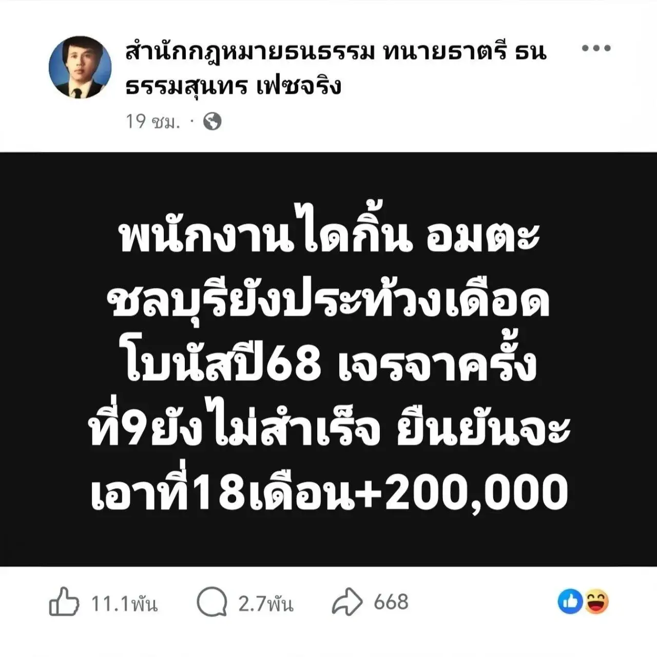 การเจรจาครั้งที่ 10 ระหว่างสหภาพแรงงานกับบริษัทไดกิ้นยังไม่ลงตัว ตัวแทนสหภาพฯ ยื่นขอเสนอ โบนัส 8 เดือน +24,000 บาท รวมทั้งทองคำ 3 บาท สำหรับพนักงานที่มีอายุงาน 10 ปีขึ้นไป หรือคิดเป็นมูลค่าโบนัสกว่า 20 เดือน (บนฐานเงินเดือนๆ ละ 2 หมื่นบาท)