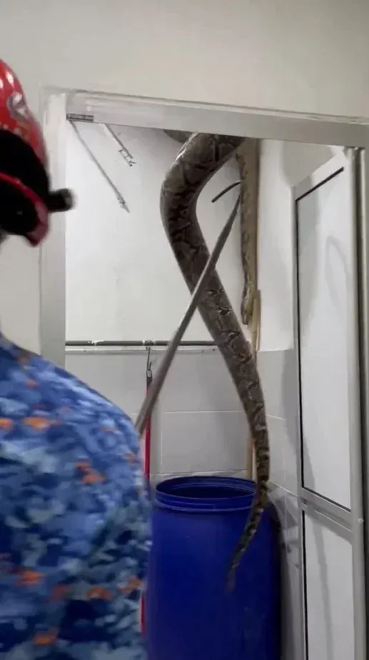 "นอร์ ฮายาติ มัด ราจับ" กล่าวอีกว่า "เมื่อเจ้าหน้าที่มาถึง พวกเขาพยายามเกี่ยวตัวงู หางของงูมันฟาดแรงมาก มากจนเพดานห้องน้ำพังลงเลยล่ะ แผ่นไม้เพดานร่วงลงกระจาย โดยลำตัวของงูยังห้อยอยู่ด้านบน ซึ่งมันทำให้เราเครียดได้จริงๆ"