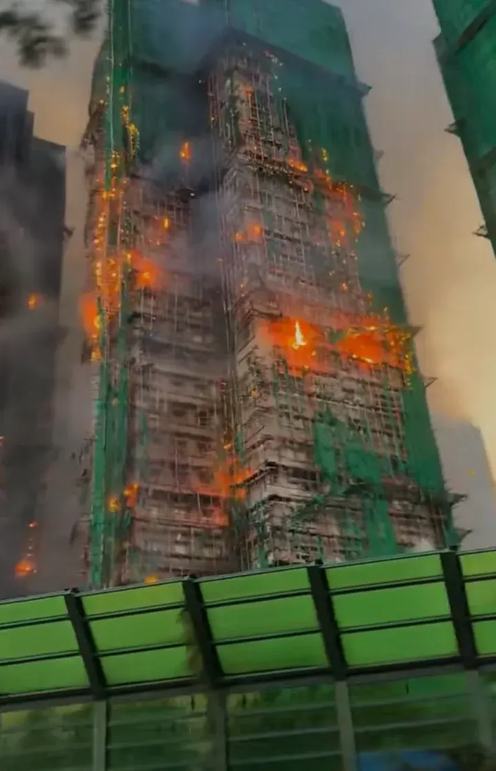 ตำรวจฮ่องกงแถลงว่า อาคารเหล่านี้ถูกคลุมด้วย แผ่นตะข่ายป้องกันและพลาสติกที่ไม่ได้มาตรฐาน ในการป้องกันอัคคีภัย