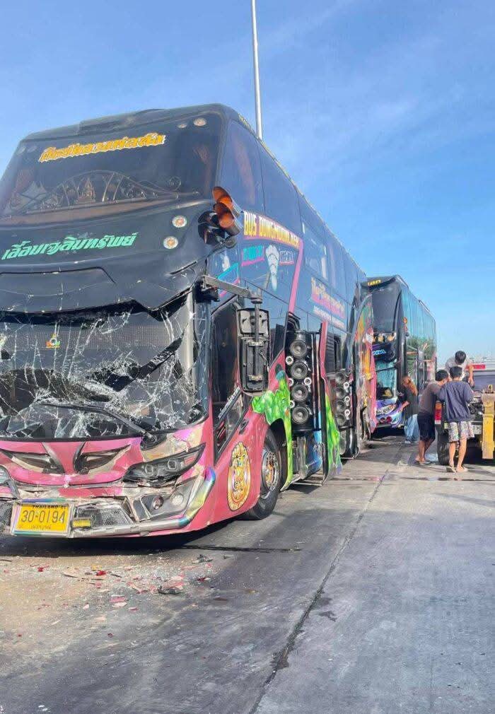 ตำรวจได้รับแจ้งเหตุรถบัสทัศนศึกษา 2 ชั้นพุ่งชนกัน 3 คัน บาดเจ็บกว่า 25 ราย โชคดีไม่มีผู้เสียชีวิต