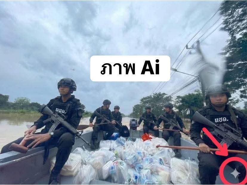 ตำรวจตชด.ยอมรับนำ เอาภาพแจกอาหาร ในเขต 8 ไปทำเป็นภาพ AI ยุทโธปกรณ์ ครบมือ แต่ภาพจริงใส่เพียงแค่เสื้อชูชีพ