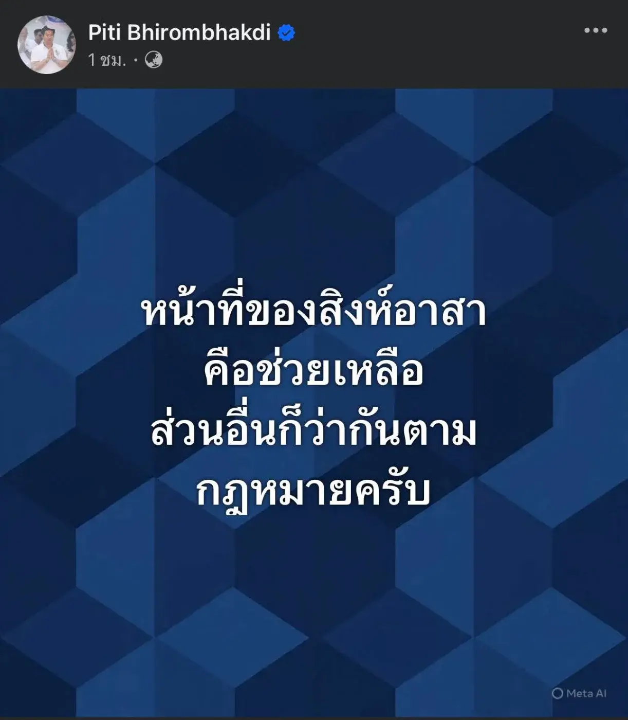 ต๊อด ปิติ โพสต์! “หน้าที่ของสิงห์อาสาคือช่วยเหลือ ส่วนอื่นก็ว่ากันตามกฎหมายครับ” หลังพบผู้ประสบภัยขโมยของ