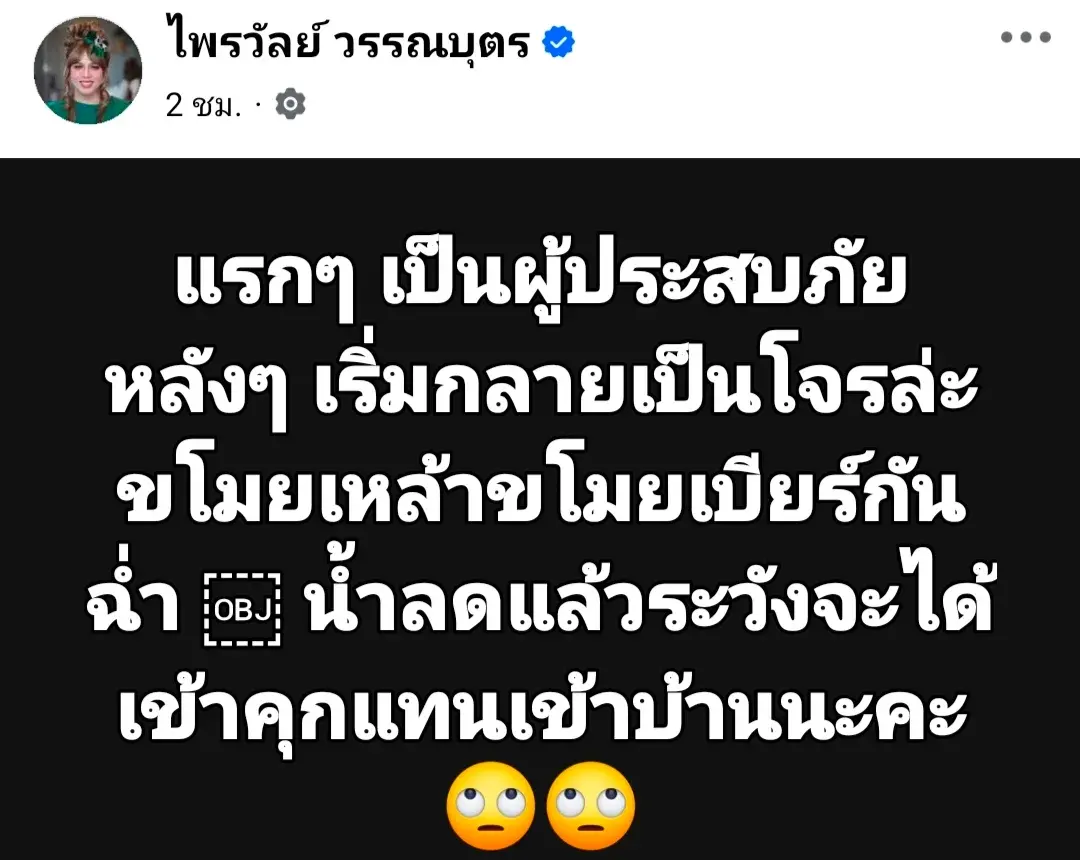 แพรี่ไพรวัลย์ โพสต์ แรกๆเป็นผู้ประสบภัยหลังๆกลายเป็นโจร กรณีน้ำท่วมภาคใต้