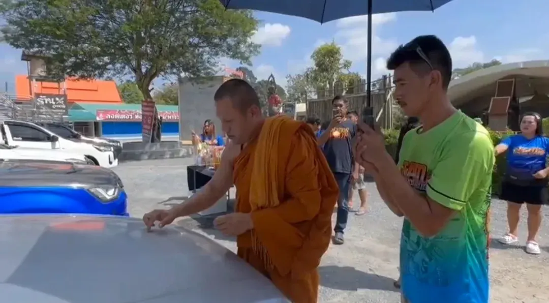 โดยมีพระอาจารย์สิทธิพร จารุธัมโม ผู้ช่วยเจ้าอาวาส ทำพิธีเจิมรถ เพื่อความสิริมงคล กิจการรุ่งเรือง มั่นคงและปลอดภัยทุกเส้นทางทั่วไทย พร้อมกับจุดประทัด 1 หมื่นนัด ถวายพ่อแก่พันล้าน เพื่อความสิริมงคล