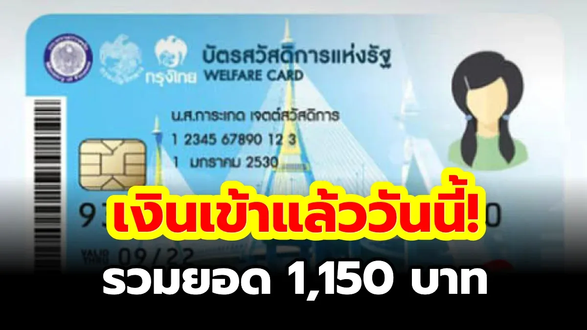 สวัสดีชาว Postjung ค่ะ วันนี้ 1 ธันวาคม 2568 เงินช่วยเหลือสำหรับผู้ถือ บัตรสวัสดิการแห่งรัฐ โอนเข้าบัญชีแล้ว รวมทั้งหมด 1,150 บาท