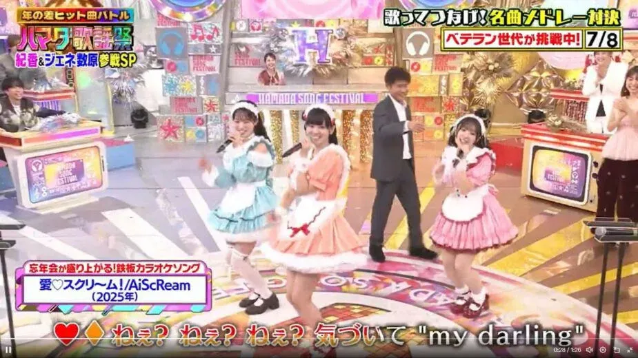 ฟุริฮาตะกำลังแสดงเพลงอยู่ดีๆ ก่อนที่ฮามาดะจะเดินเข้ามาจากด้านหลัง ใช้แขนคล้องคอเธอในลักษณะคล้ายเฮดล็อก แล้วลากเธอผ่านเวทีไปอย่างกับเป็นฉากตลกที่เตี๊ยมกันไว้ สิ่งที่ทำคนดูอึ้งคือ แขกรับเชิญและคนดังในสตูดิโอกลับปรบมือเสียงดัง ส่งเสียงเชียร์ราวกับเป็นเรื่องธรรมดา