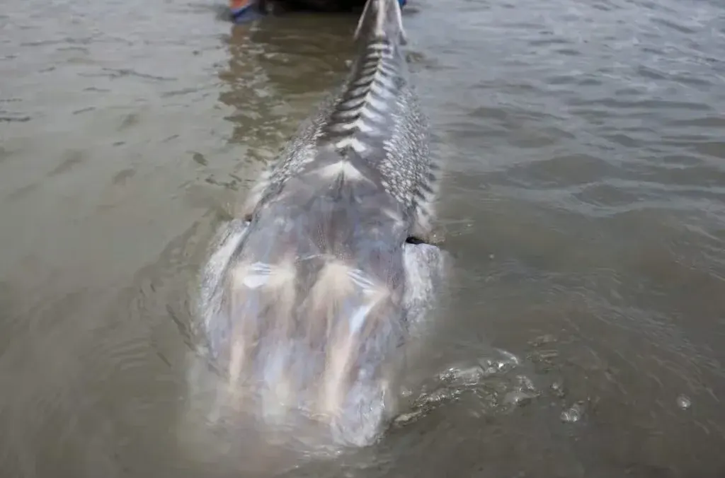พบ "ปลาสเตอร์เจียนขาว" ขนาดยักษ์ 700 กิโลกรัม อายุร้อยปี ที่แม่น้ำแคนาดา ขนาดของมันยาวกว่า 6 เมตร ทำให้ถูกเรียกว่า "สัตว์ประหลาดน้ำจืด" ผู้เชี่ยวชาญยืนยันว่าขนาดนี้หาดูได้ยากมาก