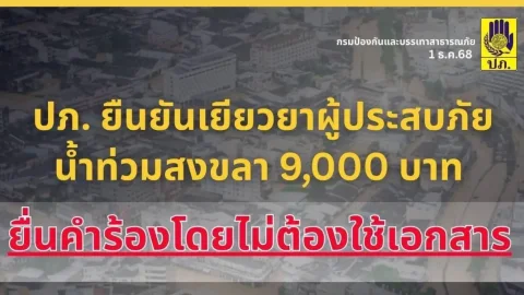 ปภ.’ ยืนยัน เยียวยาผู้ประสบภัยน้ำท่วมสงขลา 9,000 บาท ยื่นคำร้องโดยไม่ต้องใช้เอกสาร รัฐอำนวยความสะดวก ลดขั้นตอนปฏิบัติ