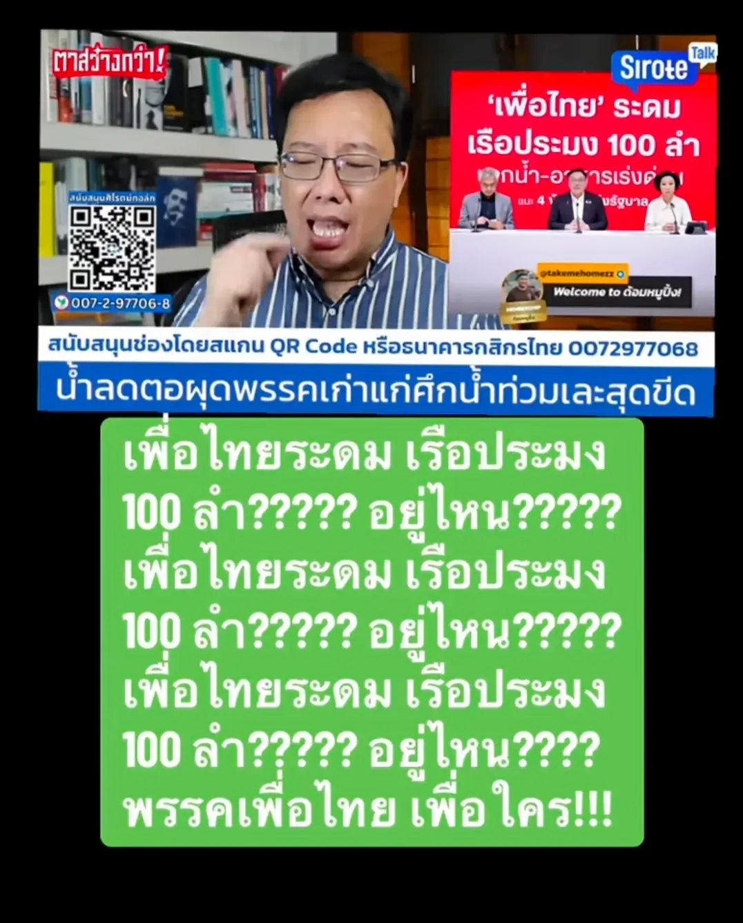 อาจารย์ศิโรจน์ ถามหาเรือ 100 ลำของพรรคเพื่อไทยที่จะลงช่วยเหลือภาคใต้