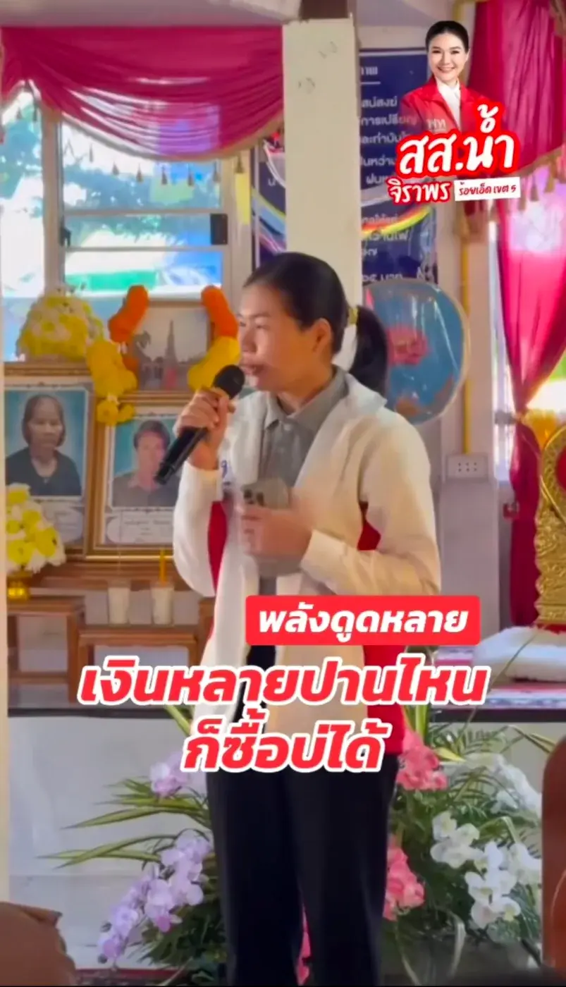 ส.ส.จิราพร สินธุไพร (น้ำ) ยืนยันกับชาวร้อยเอ็ดว่าเงินหนาแค่ไหนก็ดูด ส.ส.น้ำไปพรรคอื่นไม่ได้
