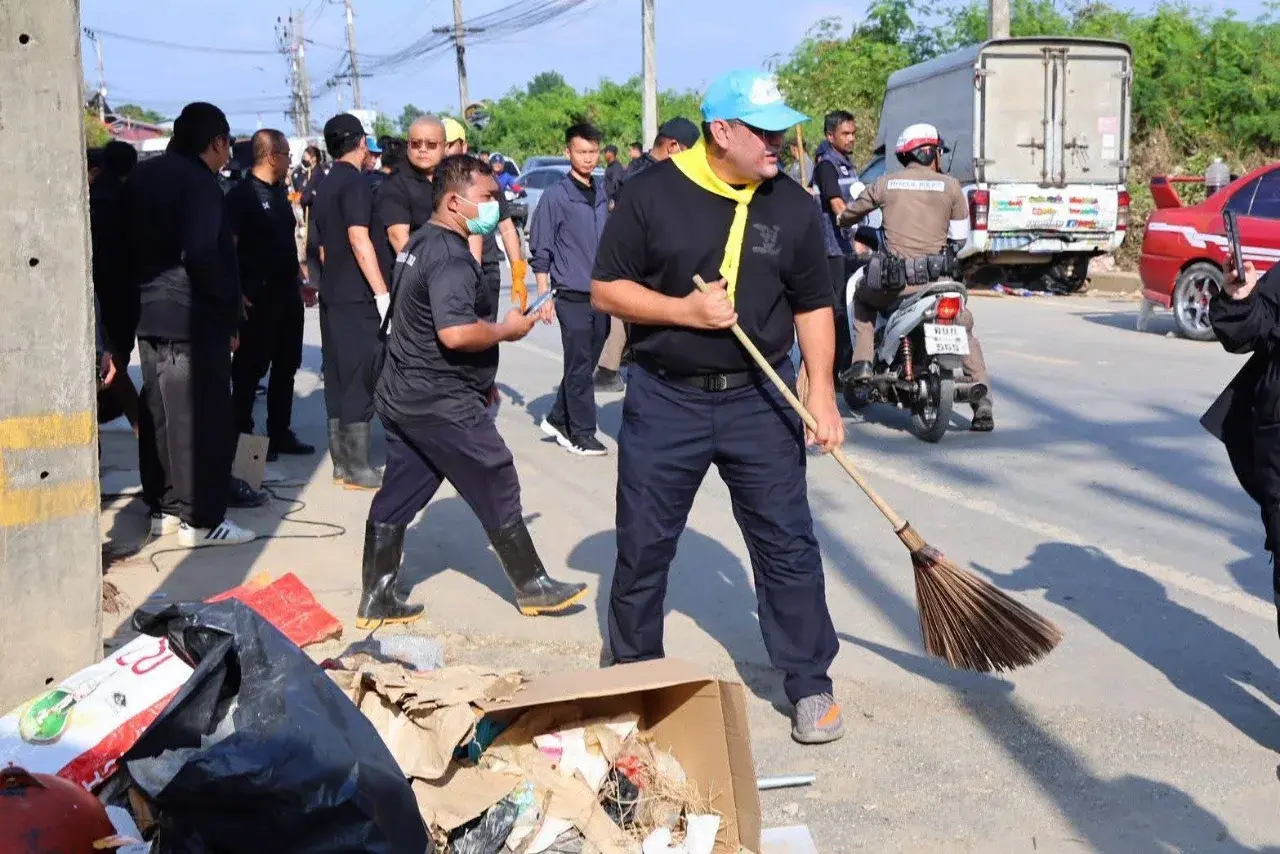 ร้อยเอกธรรมนัสช่วย ทำความสะอาดหาดใหญ่หลังจากน้ำลด