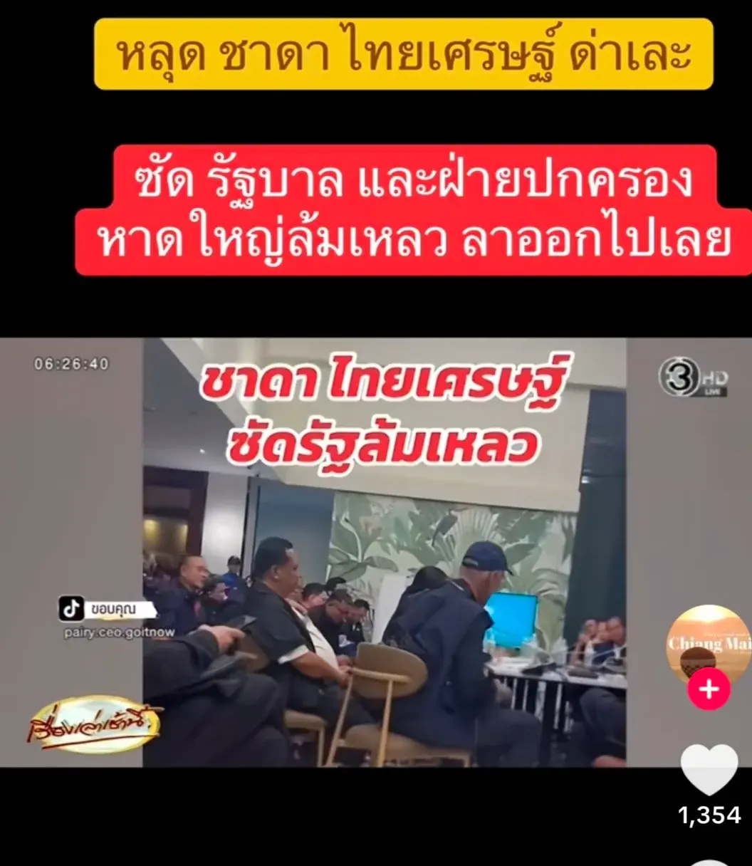 ชาดา ไทยเศรษฐ์ด่าเละ กลไกของรัฐล้มเหลวกรณีน้ำท่วมขังหาดใหญ่ เหตุการณ์นี้สืบเนื่องมาจากผู้บัญชาบัญชีติ๊กต๊อกรายหนึ่งได้มีการโพสต์คลิปวีดีโอของเรื่องเล่าเช้านี้ของคุณสรยุทธซึ่งภายในคลิปวีดีโอดัังกล่าวนี้จะปรากฏให้เห็นตัวของ ชาดา ไทยเศรษฐ์ กำลังมีการประชุมซึ่งอยู่ในวงประชุมเจ้าตัวได้หลุดจากทรัพย์ไปยังนายกแป้นฝ่ายปกครองล้มเหลวในการบริหารจัดการขึ้นภายในอาทิตย์นี้