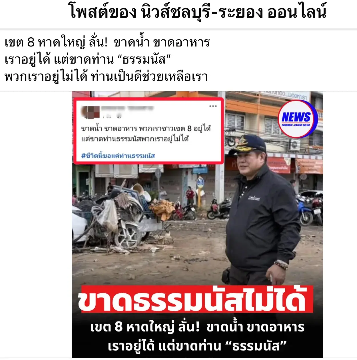 สืบเนื่องมาจากกรณีปัญหาน้ำท่วมจังหวัดภาคใต้โดยเฉพาะพื้นที่จังหวัดสงขลาอำเภอหาดใหญ่ ประชาชนจำนวนมากได้รับผลกระทบซึ่งเมื่อเกิดเหตุการณ์เช่นเดียวตอนนั้น ทางรัฐบาลก็ได้มีการส่งร้อยเอกธรรมนัสพรหมเผ่าลงพื้นที่อยู่ กับประชาชนและช่วยเหลือประชาชนจากภัยพิบัติครั้งนี้