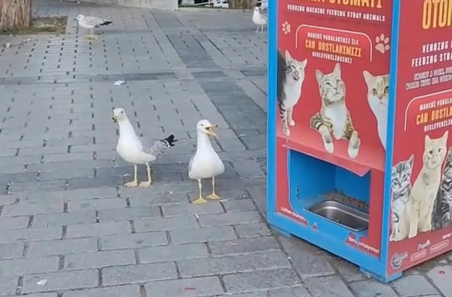 พูดไปใครจะเชื่อ… แต่นี่คือเหตุการณ์แปลกและน่าทึ่งที่เกิดขึ้นจริงกลางเมืองอิสตันบูล ประเทศตุรกี เมื่อนักท่องเที่ยวชาวต่างชาติ “โบกุสลาฟสกี” บังเอิญเดินผ่านตู้หยอดเหรียญสำหรับให้อาหารสัตว์จรจัด แล้วพบสิ่งที่ทำให้เขาต้องหยิบกล้องขึ้นมาบันทึกทันที — นกนางนวลกำลัง “ร้องเหมียว” อย่างกับเป็นแมว!