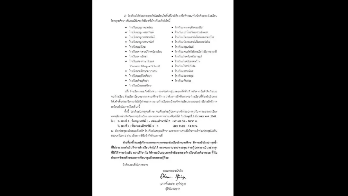 ทางโรงเรียนชี้แจงเหตุผลที่ไม่สามารถแจ้งผู้ปกครองทันทีที่มีมติเลิกกิจการ เนื่องจากต้องดำเนินการตามระเบียบของกระทรวงศึกษาธิการให้เสร็จสิ้นก่อน อย่างไรก็ตาม โรงเรียนจะยังคงจัดการเรียนการสอนในภาคเรียนที่ 2 ปีการศึกษาปัจจุบันตามปกติ และได้มีการนัดประชุมผู้ปกครองในระดับชั้นต่าง ๆ ในวันพุธที่ 3 ธันวาคมนี้ เพื่อแจ้งรายละเอียดและแนวทางการช่วยเหลืออย่างเป็นทางการ