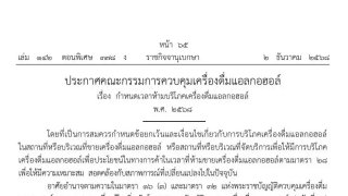 ราชกิจจาฯ ประกาศห้ามดื่มเครื่องดื่มแอลกอฮอล์เกินตี 1 โดย คกก.ควบคุมเครื่องดื่มแอลกอฮอล์