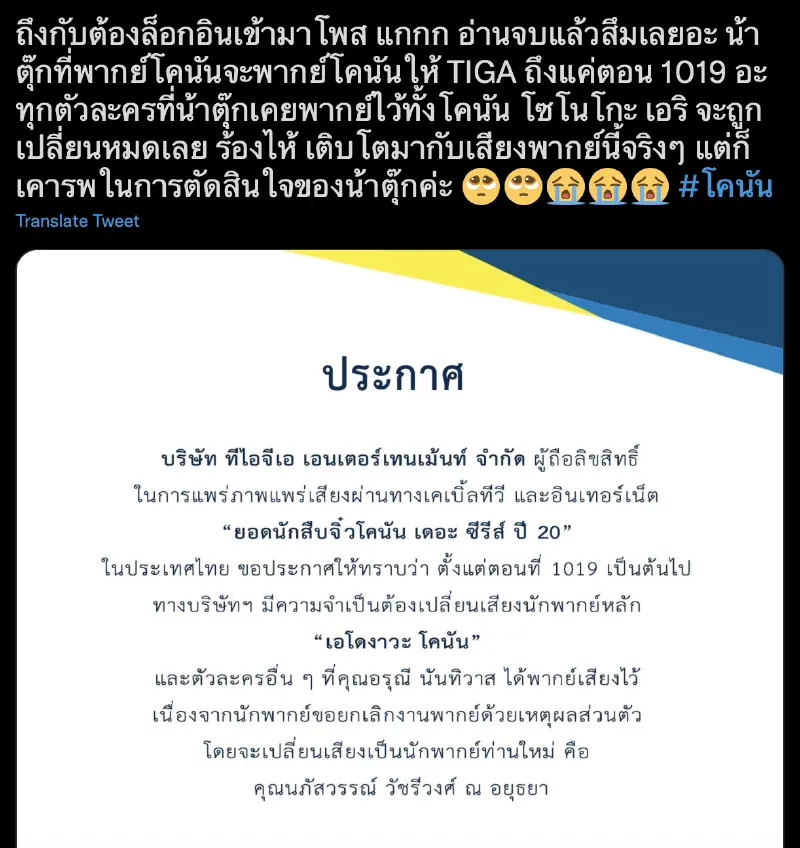 ได้ประกาศ ยุติบทบาทการให้เสียง ‘เอโดงาวะ โคนัน’ อย่างเป็นทางการแล้ว