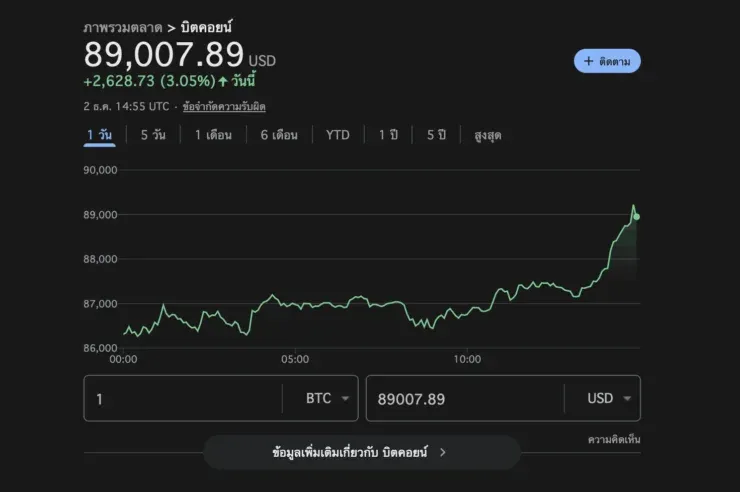 ดิฉันอ่านแล้วรู้สึกว่า การที่ Bitcoin สามารถกลับมายืนเหนือระดับจิตวิทยาแถว ๆ 88,000–89,000 ดอลลาร์ได้นั้น เป็นสัญญาณที่น่าจับตามองสำหรับเดือนสุดท้ายของปีนี้อย่างยิ่งค่ะ เพราะมันสะท้อนให้เห็นความเชื่อมั่นของนักลงทุนทั่วโลกที่ยังไม่เสื่อมคลาย