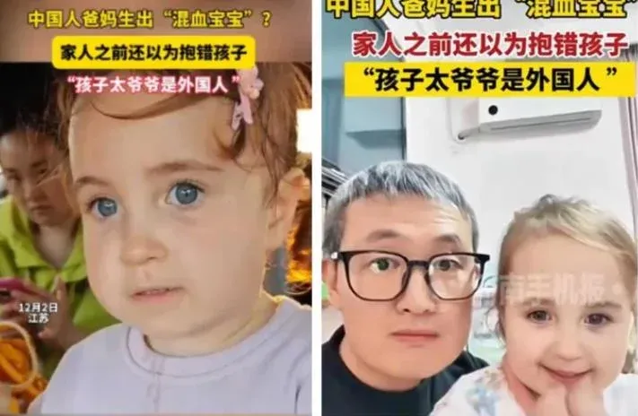 ที่มณฑลเจียงซู ประเทศจีนแผ่นดินใหญ่ คู่รักคู่หนึ่งซึ่งเป็นคนจีนแท้ๆ เพิ่งกลายเป็นประเด็นร้อนบนโซเชียลมีเดีย หลังให้กำเนิดลูกสาวที่มีหน้าตาเหมือนฝรั่งอย่างไม่น่าเชื่อ โดยเด็กหญิงมีผมสีทองและดวงตาสีฟ้า ซึ่งแตกต่างโดยสิ้นเชิงจากพ่อแม่ ที่มีผมสีดำและตาสีน้ำตาล ส่งผลทำให้ชาวเน็ตหลายคนตั้งคำถามเยอะแยะมากมาย ทั้งการนอกใจ เด็กถูกสลับตัว และ การกระโดดทางพันธุกรรมข้ามรุ่น