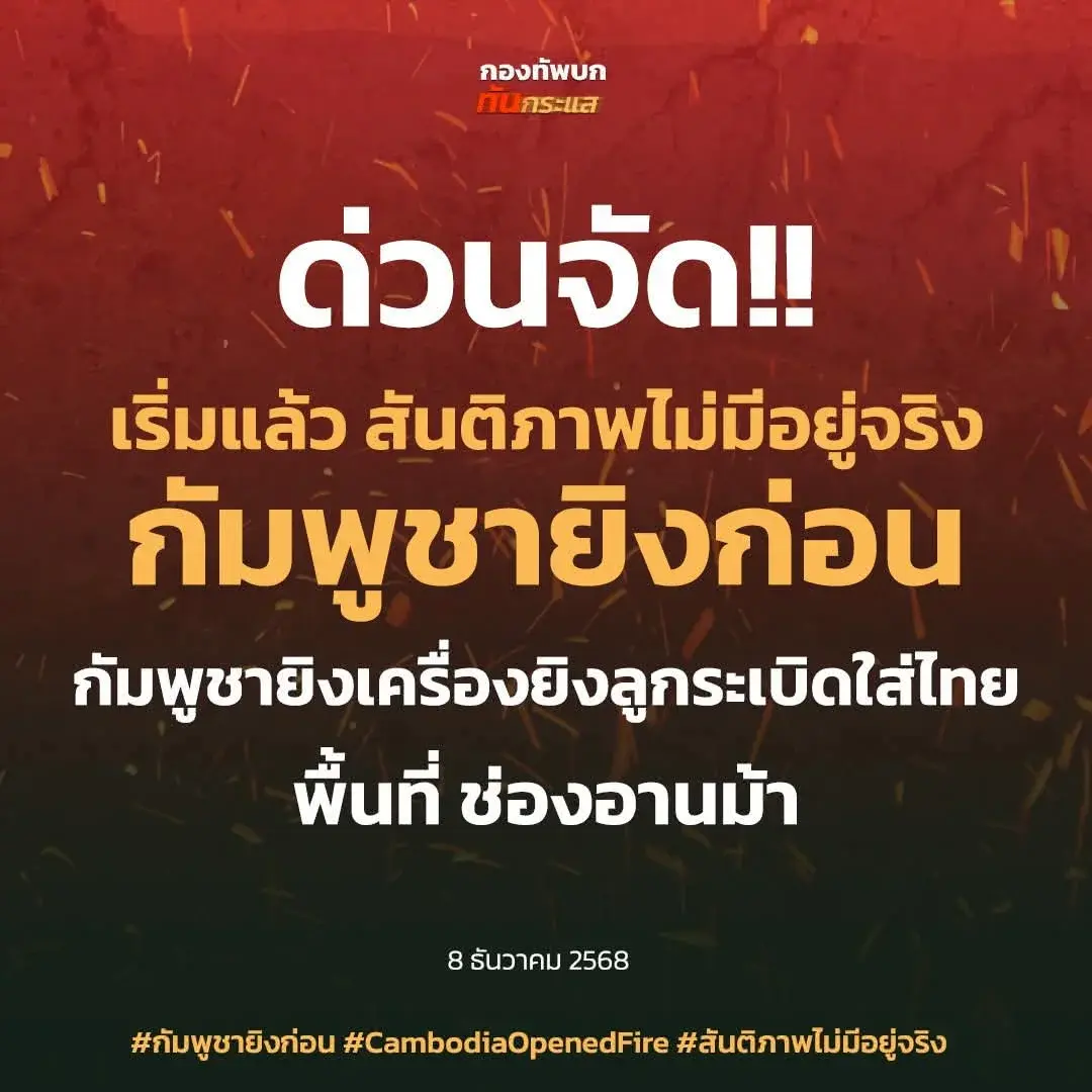 ด่วน จัดเริ่มแล้ว สันติภาพไม่มีอยู่จริง กัมพูชายิงก่อน กัมพูชายิงเครื่องยิงลูกระเบิดใส่ไทย พื้นที่ ช่องอานม้า เป็นสถานการณ์ที่คนไทยต้องติดตามกันต่อไปว่าจากนี้สถานการณ์จะเป็นอย่างไรต่อทั้งนี้ขอให้ทหารทุกคนตามแนวชายแดนปลอดภัย