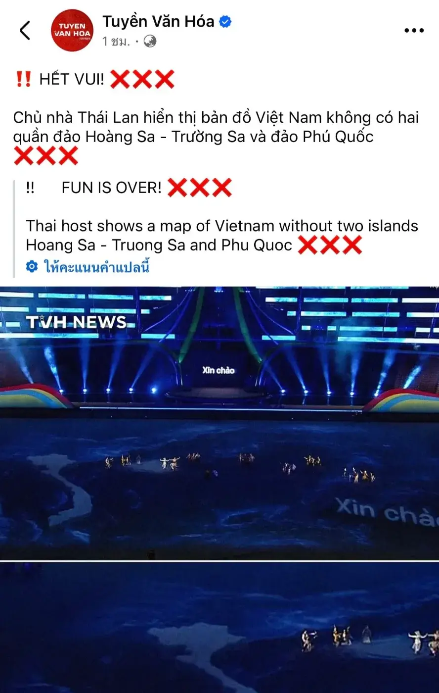 แฟนเวียดนามอย่างเดือด สื่อเวียดนาม ชี้ “ไทย” โชว์แผนที่ เวียดนามผิด พิธีเปิดซีเกมส์ 2025