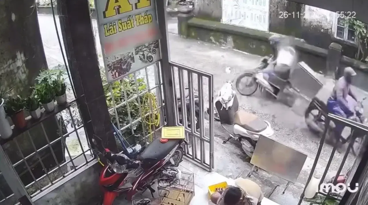 กล้องวงจรปิดของบ้านหลังหนึ่ง ได้บันทึกเหตุการณ์ที่เกิดขึ้นบริเวณหน้าบ้าน ซึ่งอยู่ชิดกับถนนเอาไว้ได้ ซึ่งในคลิปจะเห็นว่า มีชายคนหนึ่งกำลังนั่งซ่อมรถมอเตอร์ไซด์ เงียบๆอยู่คนเดียวหน้าบ้าน โดยบนถนนมีชายคนหนึ่งกำลังขับรถมอเตอร์ไซด์ ที่บรรทุกหม้อนึ่งซาลาเปาผ่านมา แต่ได้เกิดการเฉี่ยวชนกับรถที่วิ่งสวนทางมาอย่างกะทันหัน แรงกระแทกอย่างรุนแรงทำให้หม้อนึ่ง น้ำเดือด และ ซาลาเปา กระเด็นลอยไปถูกชายที่นั่งอยู่หน้าบ้าน ส่งผลให้เขาต้องรีบถอดเสื้อออกทันที เพื่อหลีกเลี่ยงการถูกลวกอย่างรุนแรง...