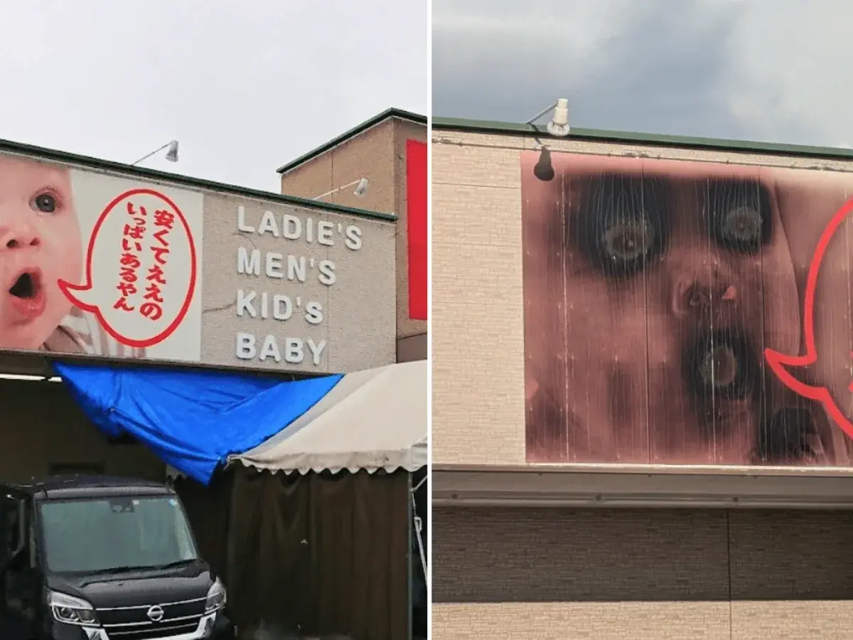 ร้านเสื้อผ้าขนาดเล็กแห่งหนึ่งในญี่ปุ่นกลายเป็นไวรัลขึ้นมาแบบไม่ทันตั้งตัว หลังป้ายร้านที่เคยเป็นภาพเด็กทารกหน้าตาน่ารักกลับกลายเป็นสิ่งชวนขนลุก เพราะอากาศร้อนจัดและแสงแดดแรงในช่วงสองสามปีที่ผ่านมา