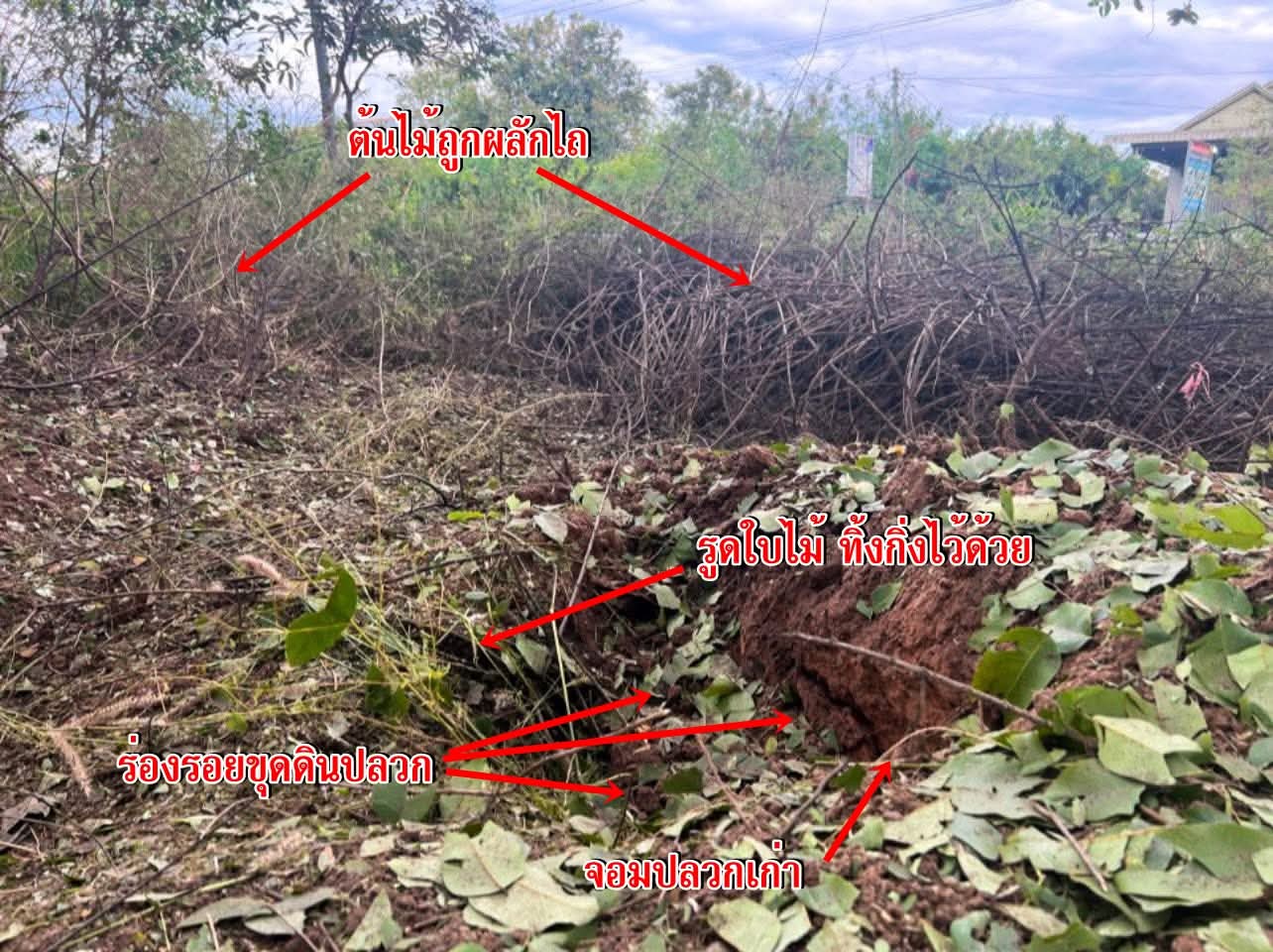 เอาละ เรามาดูกันชัด ๆ ถ้าระเบิด 500 ปอนด์ลงจริง ๆ ล่ะก็ หลุมมันต้องลึก ดินรอบ ๆ ต้องกระจัดกระจาย ต้นไม้ต้องหักกระจุยเป็นวงกว้าง แต่พอดูรูปจริง กลับเหมือนเอาเคียวมาดายหญ้าเฉย ๆ ถางพื้นที่รอบ ๆ เล็กน้อย ขุดจอมปลวกเก่า แล้วเอาใบไม้มากองโป๊ะ ตบท้ายด้วยกิ่งไม้แห้ง ๆ😑 ไม่เนียนว่ะ บอกตรงๆ ใครจะโง่เชื่อ แต่เหมนมันเชื่อ