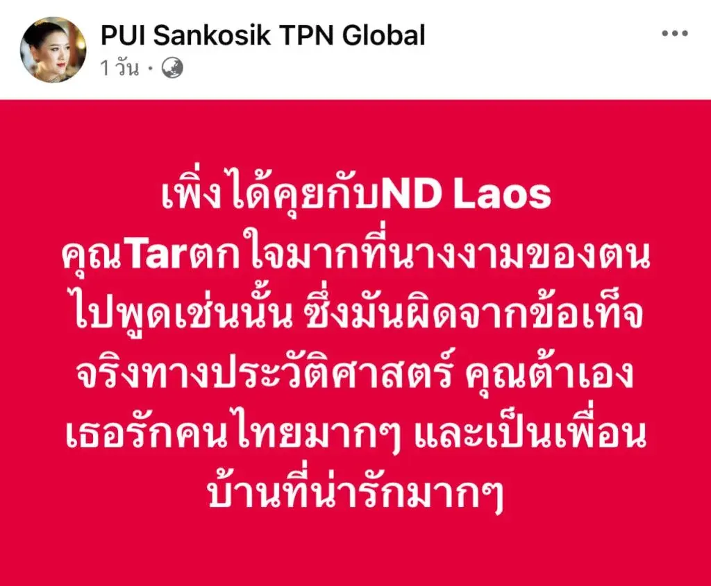 ปุ้ย TPN ลุกขึ้นปกป้องศักดิ์ศรี! หลังนางงามลาวกล่าวบิดเบือนประวัติ ‘พระแก้วมรกต’