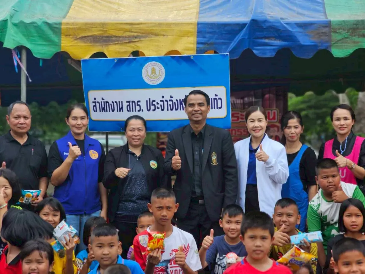 ที่ตั้งใจมอบโอกาสแห่งการเรียนรู้ พร้อมเติมกำลังใจผู้ประสบเหตุในยามยาก ให้ทุกคนก้าวผ่านสถานการณ์นี้ไปด้วยกัน” และ นายเชิดชัย กลึงพูดชา รองผู้อำนวยการสำนักงาน สกร.ประจำจังหวัดสระแก้ว ที่ลงพื้นที่ร่วมกิจกรรมให้กำลังใจแก่ผู้อพยพฯ ได้กล่าวว่า "สำนักงาน สกร.ประจำจังหวัดสระแก้ว โดย นางสาวจรูญรัตน์ บุตรพรม ผู้อำนวยการ สำนักงาน สกร.ประจำจังหวัดสระแก้ว ขอแบ่งปันน้ำใจ ต่อเติมรอยยิ้ม ส่งเสริมการเรียนรู้ ทุกที่ ทุกเวลา เพื่อทุกคน”
