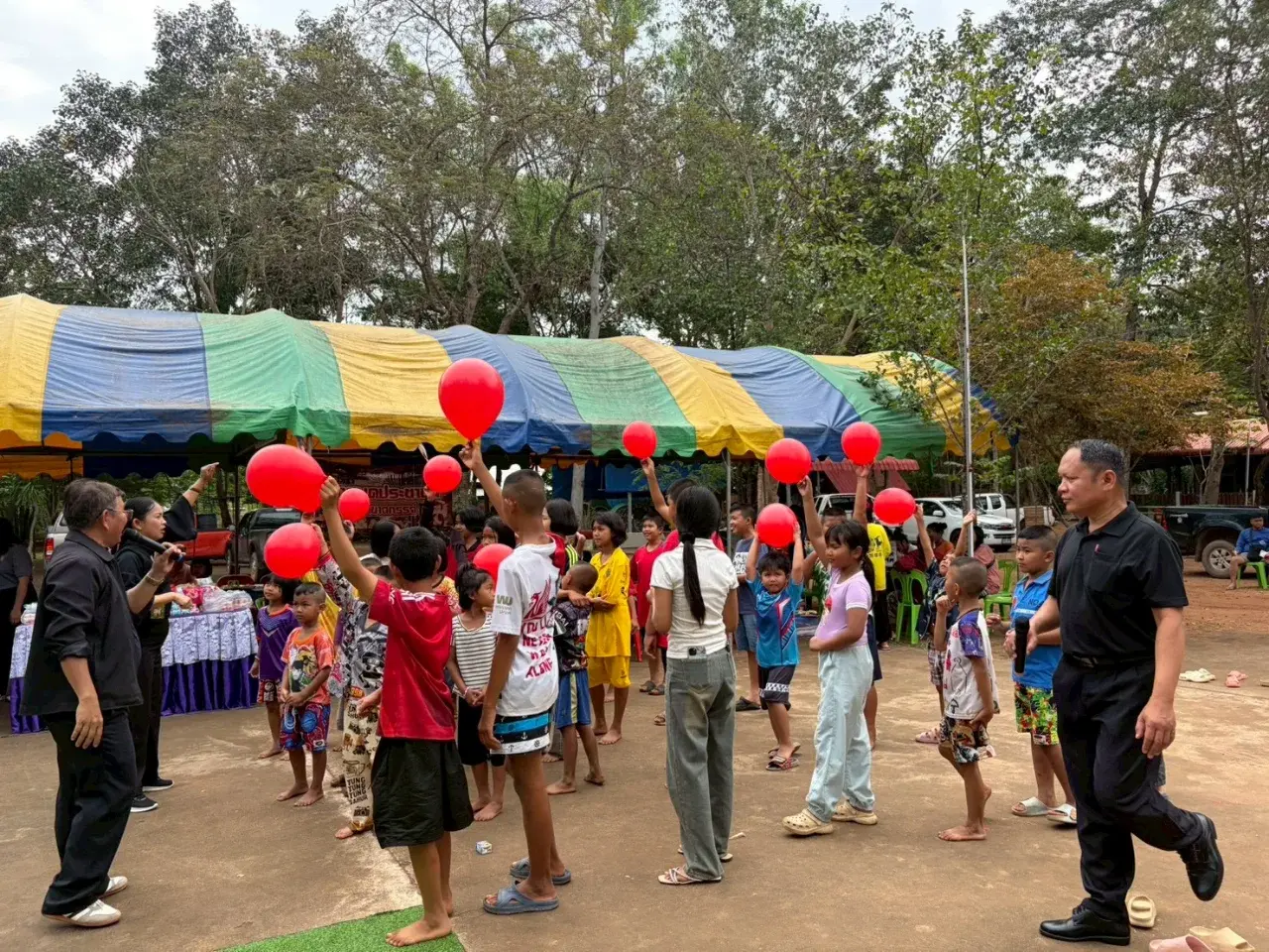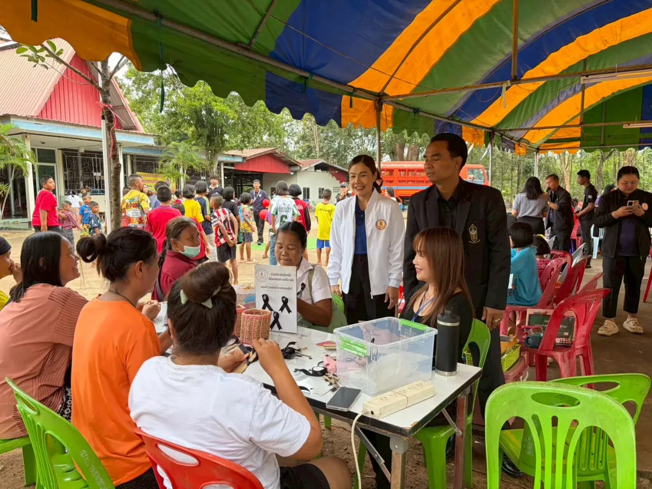 กิจกรรมภายในงานเต็มไปด้วยสีสันและรอยยิ้ม เริ่มตั้งแต่กิจกรรม พัดสวยด้วยมือเรา ลูกปัดหรรษา ระบายสีสร้างสรรค์ ที่เปิดโอกาสให้เด็กและเยาวชนได้ใช้จินตนาการ ฝึกสมาธิ และเรียนรู้ผ่านการลงมือทำควบคู่กับความเพลิดเพลิน นอกจากนี้ยังมีกิจกรรม ตัดผมเสริมสวย การทำริบบิ้นดำ เพื่อเสริมสร้างขวัญกำลังใจแก่ประชาชนในศูนย์พักพิงผู้อพยพฯ