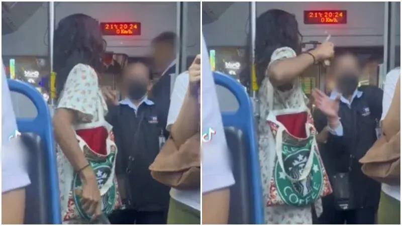 สาวคลั่งถือมีดบนรถเมล์ทำให้ผู้โดยสารแตกตื่นและพยายามทำร้ายกระเป๋ารถเมล์