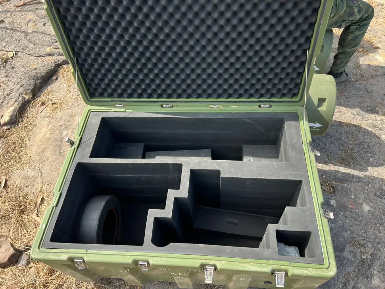 แต่เจอของกลางที่ไม่ธรรมดาเลยนั่นคืออาวุธหนักชนิดใหม่เอี่ยมจากฝั่งกัมพูชา เป็น ระบบขีปนาวุธต่อต้านรถถังนำวิถียุคที่ 5 รุ่น GAM-102 LR สัญชาติจีน วางทิ้งไว้ในพื้นที่เป็นจำนวนมาก