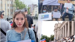 ชาวกัมพูชาที่อาศัยและทำงานอยู่ในประเทศเกาหลีใต้ ได้รวมตัวกันเพื่อจัดการชุมนุม-ประท้วงไทย ในกรณีสงคราม ไทย - กัมพูชา