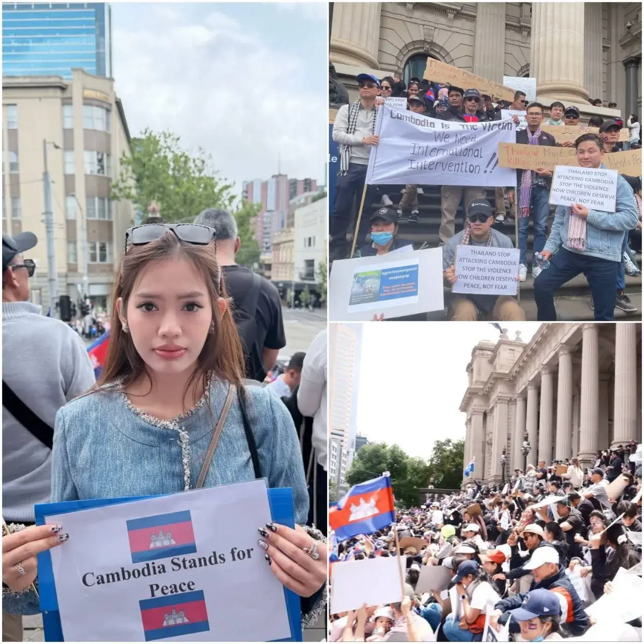 ชาวเขมรในออสเตรเลียก่อม็อบรวมตัวกันเพื่อประท้วงต่อต้านการรุกรานของไทยต่อประเทศกัมพูชา
