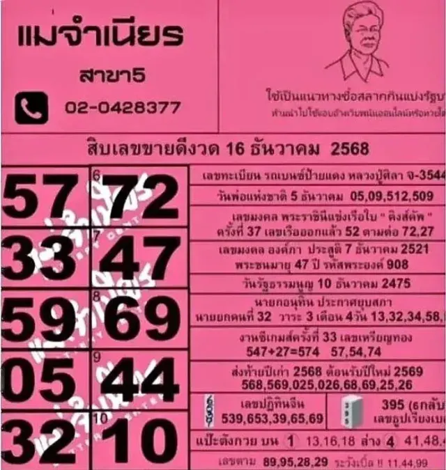 เลขเด็ดแม่จําเนียร 10 เลขขายดี งวดวันที่ 16 ธ.ค.2568