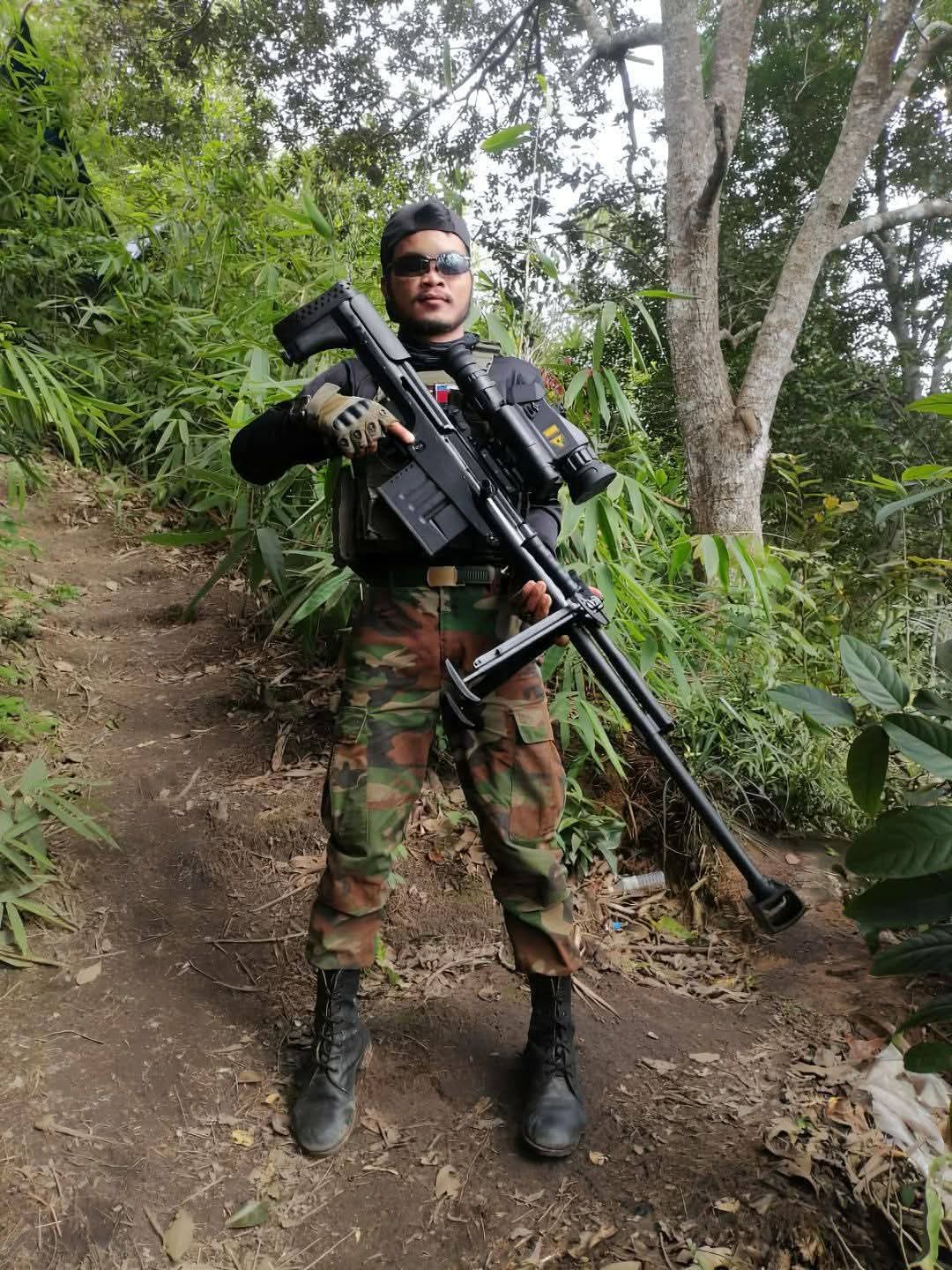 ทหารกัมพูชา 🇰🇭 กับปืนไรเฟิลต่อต้านวัตถุ (Anti-Materiel Rifle) แบบกึ่งอัตโนมัติ รุ่น QBU-10 ของขวัญจากจีน 🇨🇳 ถูกนำมาใช้ในพื้นที่แนวรบพระวิหาร ภาพจากเทเลแกรมทหารกัมพูชา